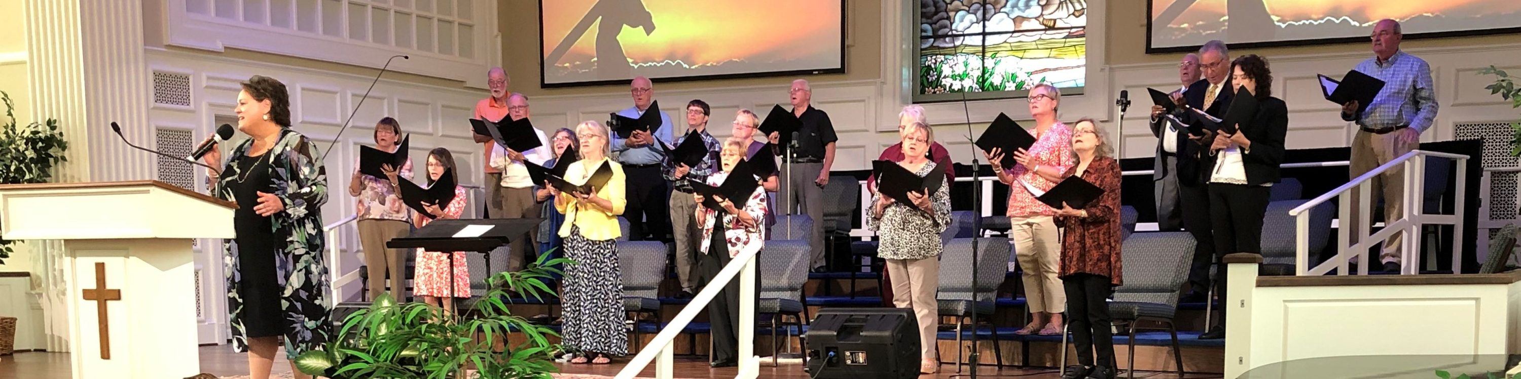 Welcome to the Music Ministry of FBC Galax! The Sanctuary Choir, composed of adults of all ages, helps lead the congregation during weekly worship. The choir sings a wide variety of musical styles, and along with preparing for Sunday worship, we present up to three holiday programs a year (Christmas, Easter, and Patriotic) complete with costuming, drama, sets, and orchestra. Weekly rehearsals are held on Wednesdays at 6:30 p.m. in the choir room. No experience is necessary, and no audition is required - just a joyful heart for music and the Lord! We hope you'll considering joining us for a great time of worshipping through music and fellowshipping with one another. If you have any questions, please reach out to us by calling the church office.